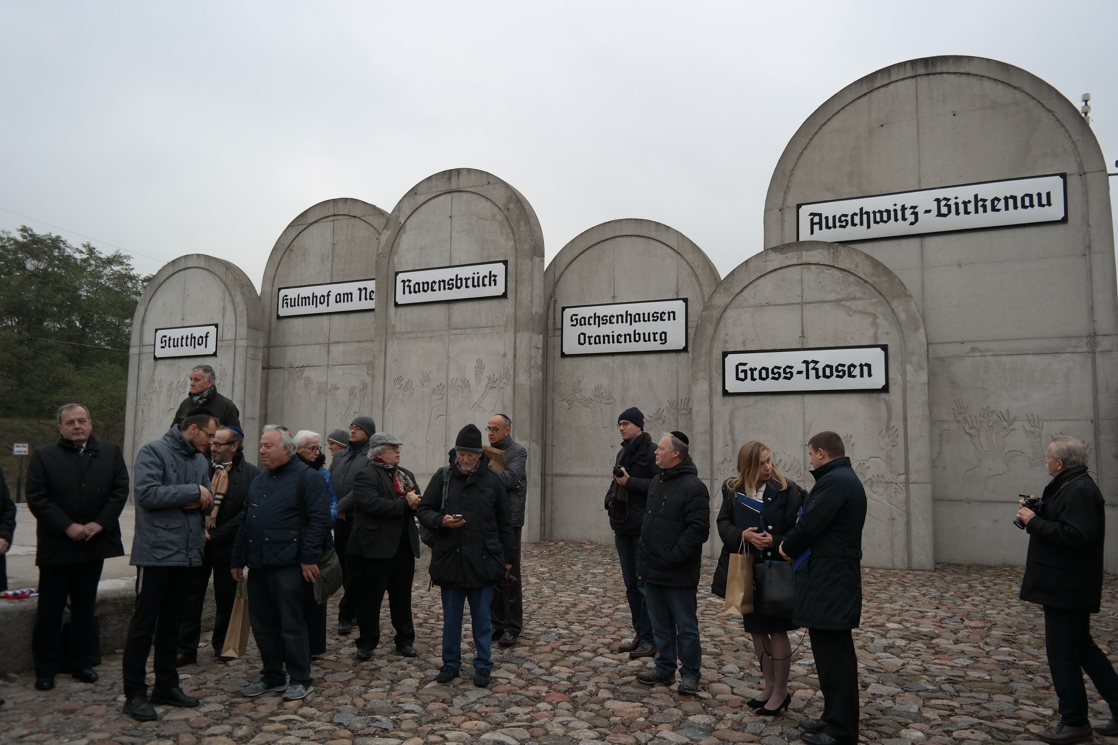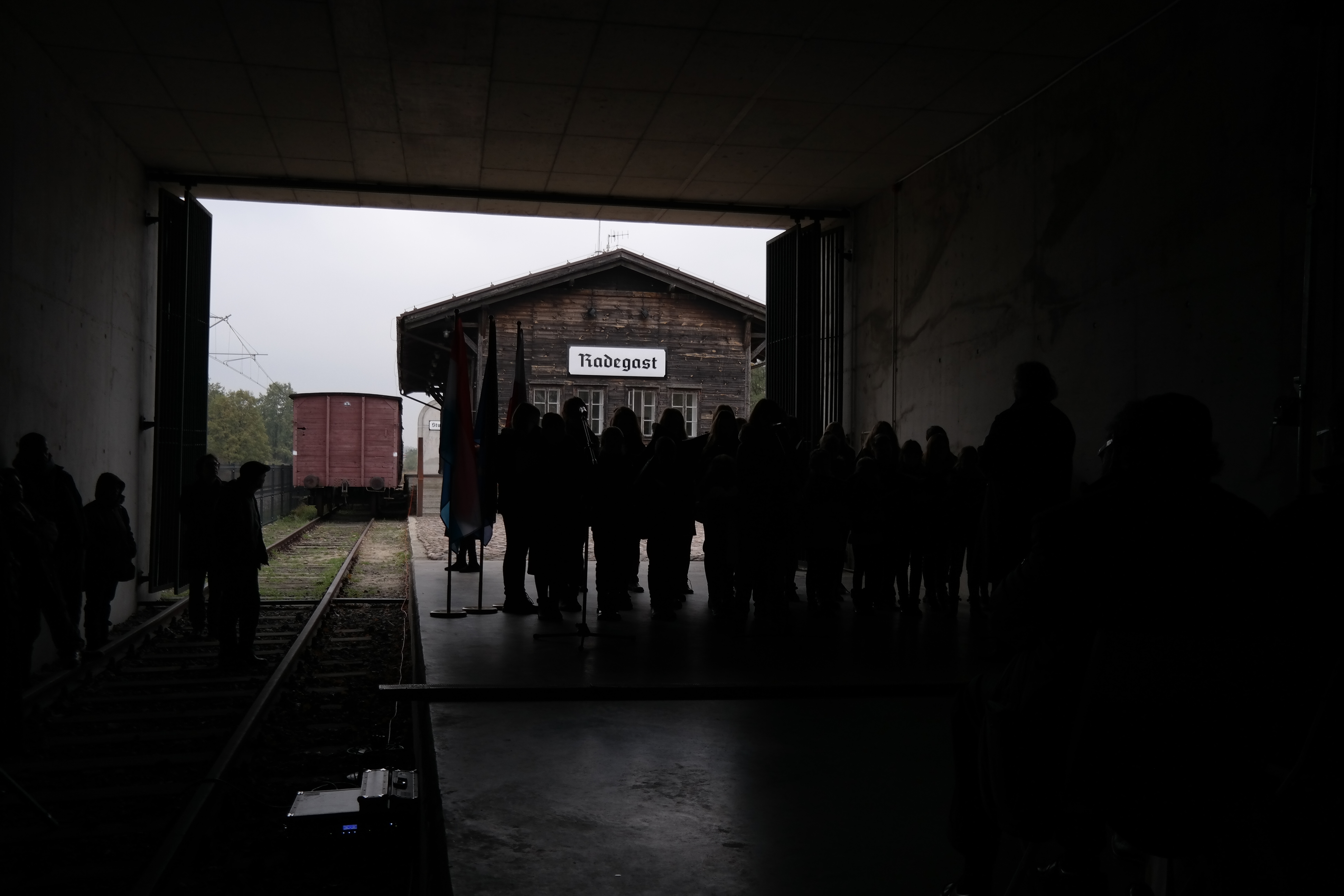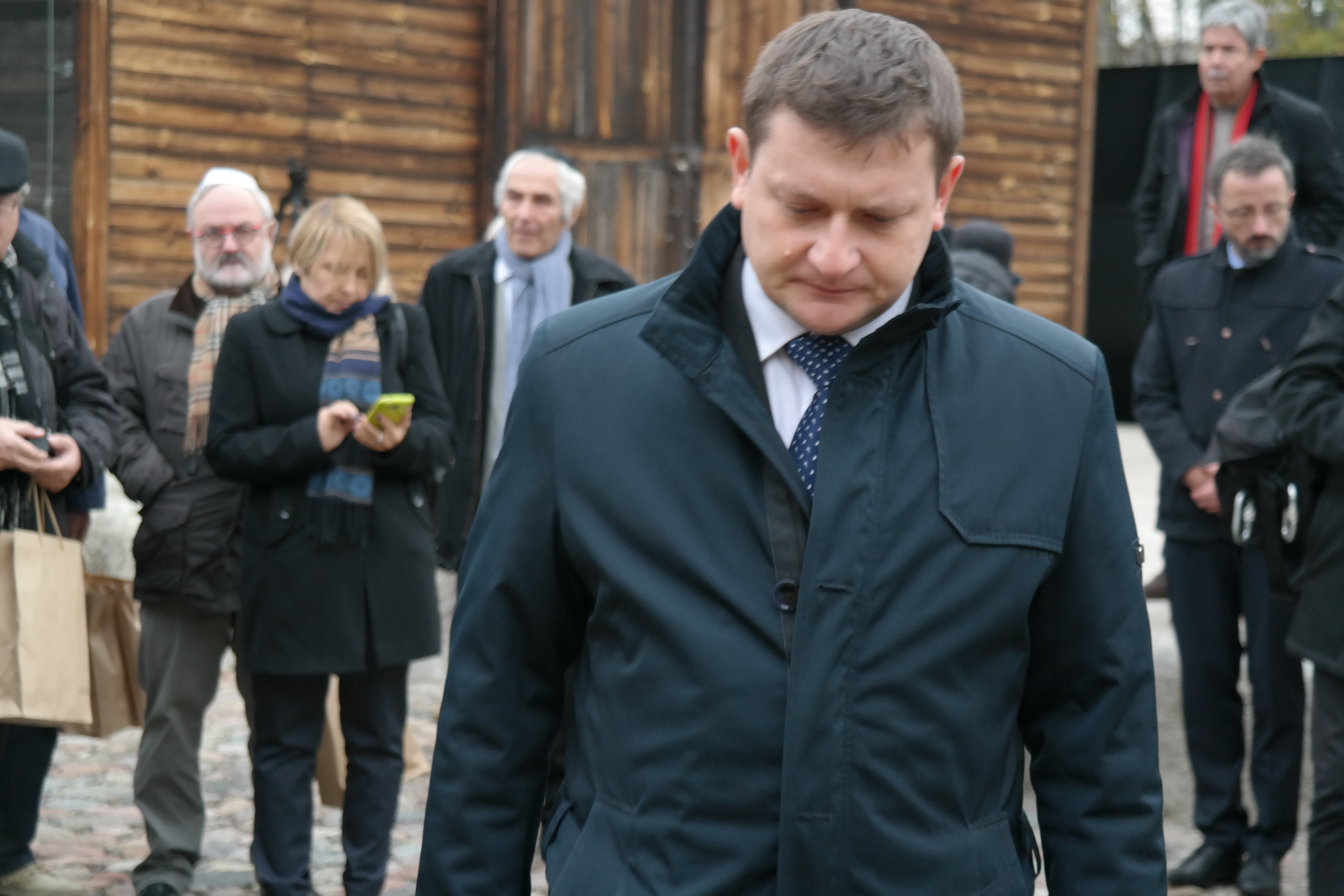 Lodž, čtvrť Baluty, památník v železniční stanici Radegast, pietní akt připomínající deportaci Židů z Lucemburska, říjen 2016
