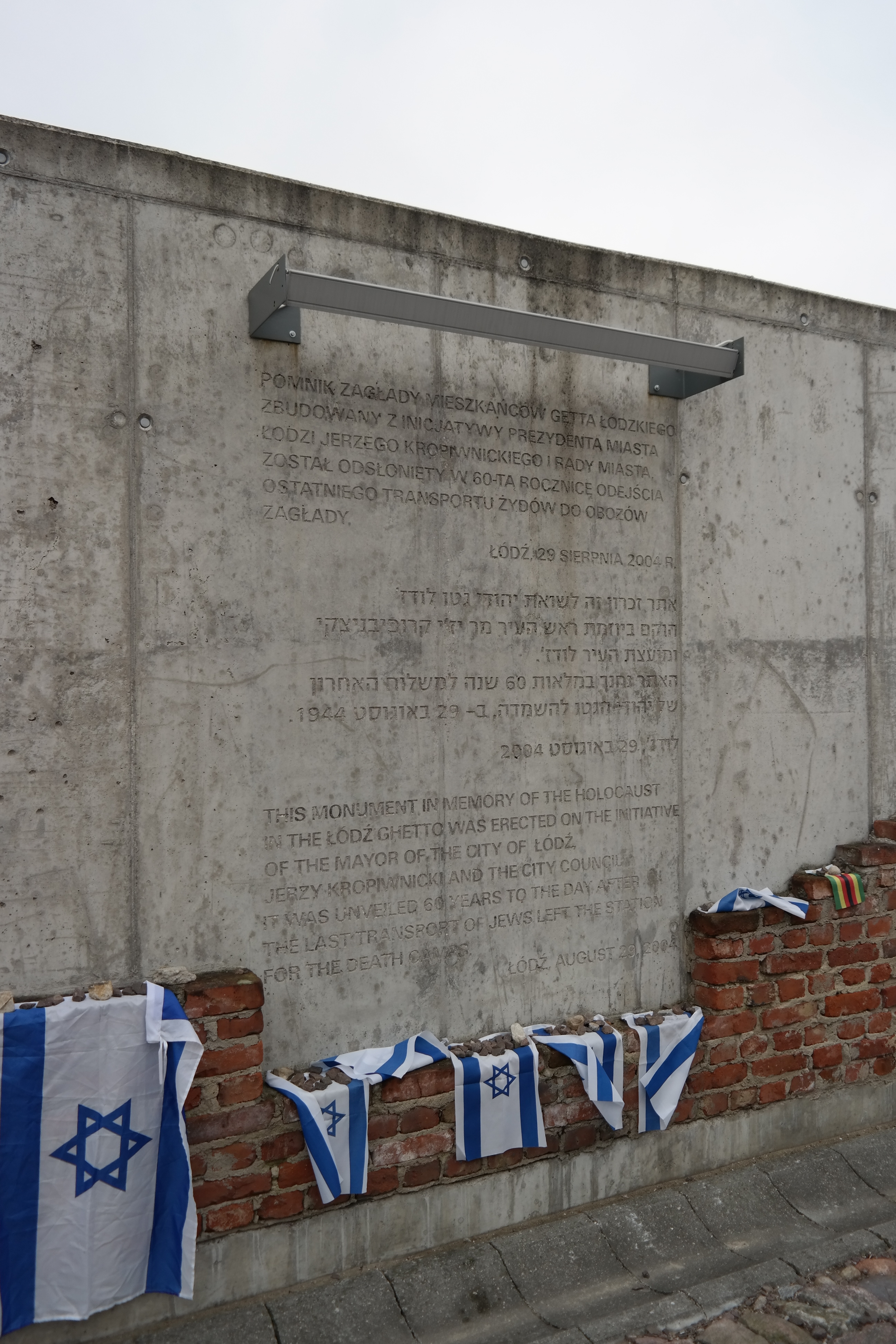 Lodž, čtvrť Baluty, památník v železniční stanici Radegast, odkud byli během druhé světové války deporotváni vězni ghetta do vyhlazovacích táborů